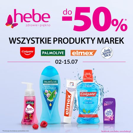 In our drugstores and online store, you can even get a -50% discount on absolutely all Palmolive Polska, elmex, Lady Speed Stick and Colgate products. The offer is valid from 02-15.07.2020 or while stocks last. Does not apply to makeup kits and products.