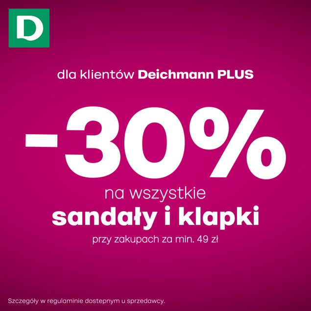 Teraz w DEICHMANN wszystkie sandały i klapki przy zakupach za min. 49 zł dla klientów Deichmann PLUS z rabatem 30%! Tak, tak! 30% na wszystkie sandały i klapki przy zakupach za min. 49zł! I takie RABATY to my rozumiemy!