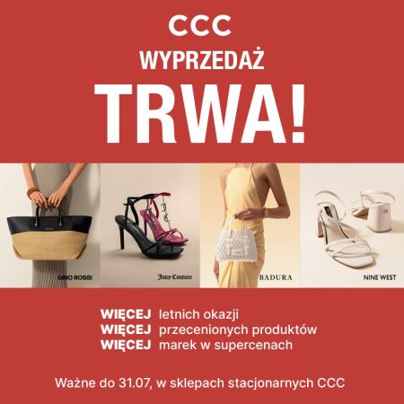 W CCC rozpoczynamy kolejny etap wielkiej wyprzedaży! Właśnie dodaliśmy tysiące nowych produktów w niezwykle atrakcyjnych cenach. Odkryj bogactwo światowych marek i uzupełnij swoją garderobę o stylowe obuwie, torebki i akcesoria. Nie przegap okazji, by cieszyć się słońcem w najlepszym wydaniu!