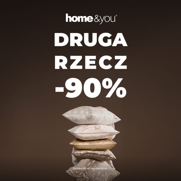 Teraz w salonie home&you trwa promocja DRUGA RZECZ -90%. Łącz produkty w pary i odśwież wnętrze w super ofercie! Szczegóły w regulaminie i na home-you.com
