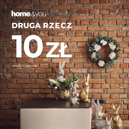 W sklepach home&you trwa promocja! Drugi, tańszy produkt kupisz za 10 zł! Szczegóły w regulaminie i na home-you.com.