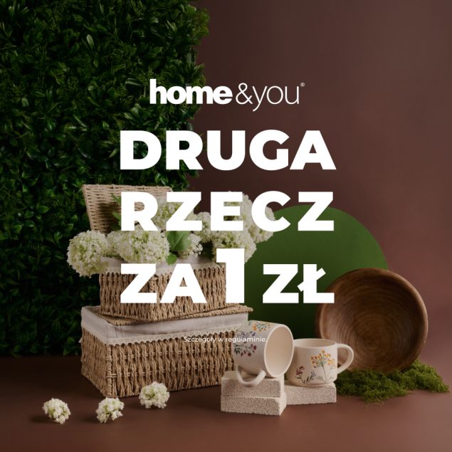 Teraz w salonie home&you trwa promocja DRUGA RZECZ za ZŁOTÓWKĘ! Korzystaj i oszczędzaj przez cały weekend, także w niedzielę. Szczegóły w regulaminie i na home-you.com.