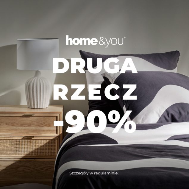 Zrób zakupy w home&you i oszczędzaj — za każdy drugi, tańszy produkt z promocji zapłacisz aż o 90% mniej! Szczegóły w regulaminie i na home-you.com